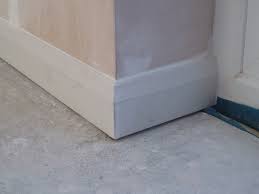we then easily nail the skirting board to the wall studs using the air nailer or some finish nails and a hammer. Mitering is done on the the outside corners at 45 degrees, coping out the back side of the skirting board to get a neat, close fit. When the fits are done we switched to wood files inorder for us to finish the trimming, taking off a little at a time until the fit is perfect,we then filled in any line still showing with caulking around the top of the baseboard to fill any gaps caused by uneven walls .When we finish the skirting we clean the area dispose any waste then pack our tools away.